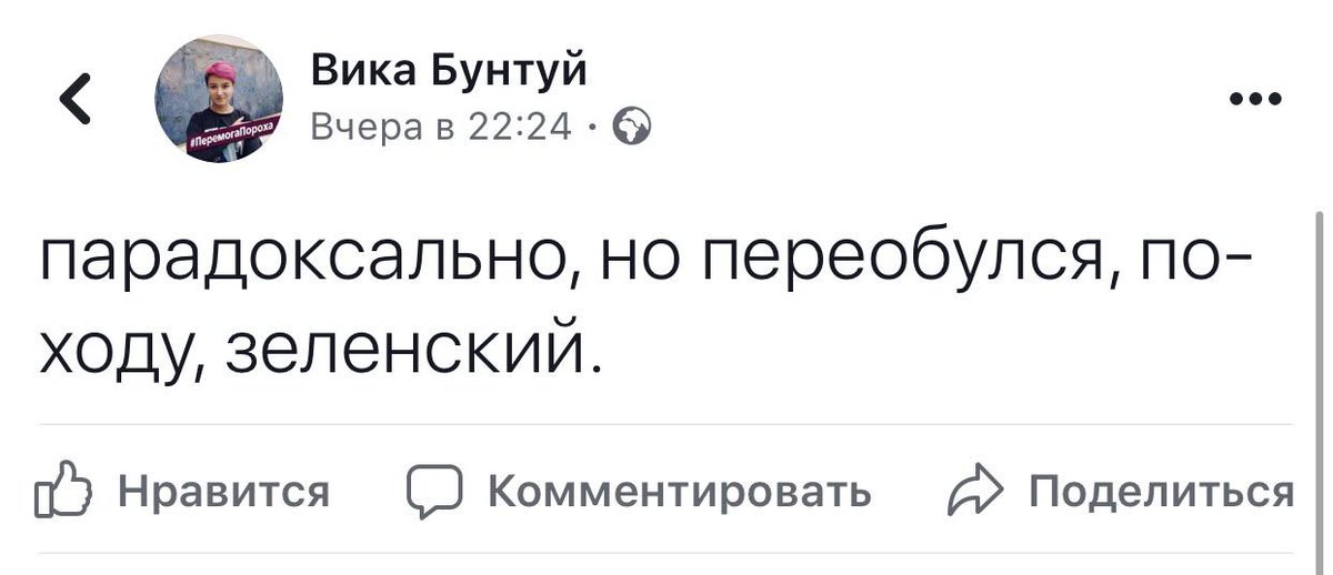 на что тут же последовал резонный вопрос: а что, у нас через 5 лет будет передовая? 3. Тарифы Президент понижать не будет, потому что это не компетенция Президента. 4. Сажать Президент никого не может, потому что он не Судья. 5. Супрун все делает правильно, реформу медицины надо продолжать и за вспышку кори ответственна не она, а "папередники" 6. Реформа Нова Украинська Школа-правильная и ее надо продолжать. 7. Референдум по НАТО сейчас проводить нет смыла. При этом самого ВаЗелина видели крайний раз трое суток назад в штабе после голосования. Вопрос: избиратели Вазелина, зачем вы выбрали дефективную копию Порошенко? Последний раз редактировалось WhiteBoarder; 25.04.2019 в 09:34.. |