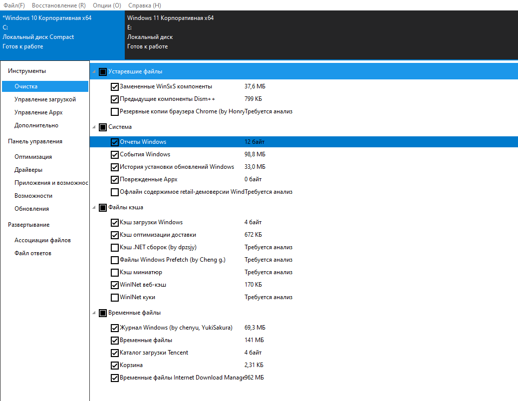 vlad56, еще много места могут занимать копии замененных файлов, они хранятся в WinSXS. Очистить можно в DISM++, раздел очистка, самая верхняя галка.
