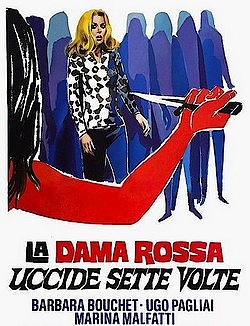 ![]() Две девочки, сестрички Китти и Эвелин, поссорились, - одна из них отобрала любимую куклу у другой. На глазах у деда, прикованного к инвалидной коляске, пронзила куклу кинжалом. На стене в комнате, где это происходило, висит картина, на которой одна женщина убивает другую. Дед успокоил внучек. Те попросили рассказать им историю, связанную с этой картиной. Тадеуш Вильденбрук рассказал легенду о проклятии, тяготеющем над их родом. Много столетий назад две сёстры, Красная и Чёрная королева, ненавидели друг друга с детства. В итоге Чёрная королева убила Красную, нанеся семь ножевых ранений. Через некоторое время Красная королева восстала из мёртвых и убила сестру, а также ещё шестерых связанных с ней людей (по количеству полученных смертельных ранений). Каждые сто лет эта ужасная история повторяется. По словам деда очередное столетие завершится через четырнадцать лет. Прошли эти годы. В спальне старика неожиданно ночью появилась женская фигура в красном. Крик ужаса, сердечный приступ, Тадеуш скончался. Оглашение завещания. В нём Тадеуш сообщил, что всё его состояние должно быть поделено между тремя внучками, Китти, Эвелин и Франциской. Подробности должны быть оглашены в начале следующего года в результате вскрытия дополнительного пакета. На оглашении отсутствовала Эвелин, считается, что она живёт в Америке. На самом деле некоторое время назад Китти и Эвелин поссорились в саду замка, в результате Эвелин погибла. Смерть скрыли, об этом знают лишь Китти, Франциска и её муж Герберт. Вскоре после оглашения завещания началась череда убийств друзей и знакомых Китти. Все убийства, похоже, были совершены Эвелин (по крайней мере составленный фоторобот очень похож на неё), одетой в красный плащ. Однако полиция подозревает, что Китти и ее женатый любовник Мартин являются истинными виновниками убийств, особенно после того, как жена Мартина, помещенная в лечебницу, была найдена мертвой. Согласно легенде убийств должно быть семь. Всё идёт к этому числу. Полиция пытается найти убийцу... Информация о фильме Название: «Красная королева убивает семь раз» Оригинальное название: «La dama rossa uccide sette volte» Год выпуска: 1972 Жанр: Ужасы, Триллер Режиссер: Эмилио Миралья В главных ролях: Барбара Буше, Уго Пальяи, Марина Малфатти, Марино Мазе, Пиа Джанкаро, Сибил Даннинг, Нино Корда, Фабрицио Мореско, Рудольф Шюндлер, Мария Антониетта Гуидо Выпущено: Италия, ФРГ, Монако Продолжительность: 01:39:15 Перевод: одноголосый любительский перевод + русские субтитры + английские субтитры Файл Формат: AVI 1.0 (VFW 1.1) Качество: BDRip Видео: 720x304 (2.37:1), 23.976 fps, XviD build 73, ~1897 kbps avg, 0.36 bit/pixel Аудио: 48 kHz, AC3 Dolby Digital, 2 ch, ~192.00 kbps avg Размер: 1490.35 Mb